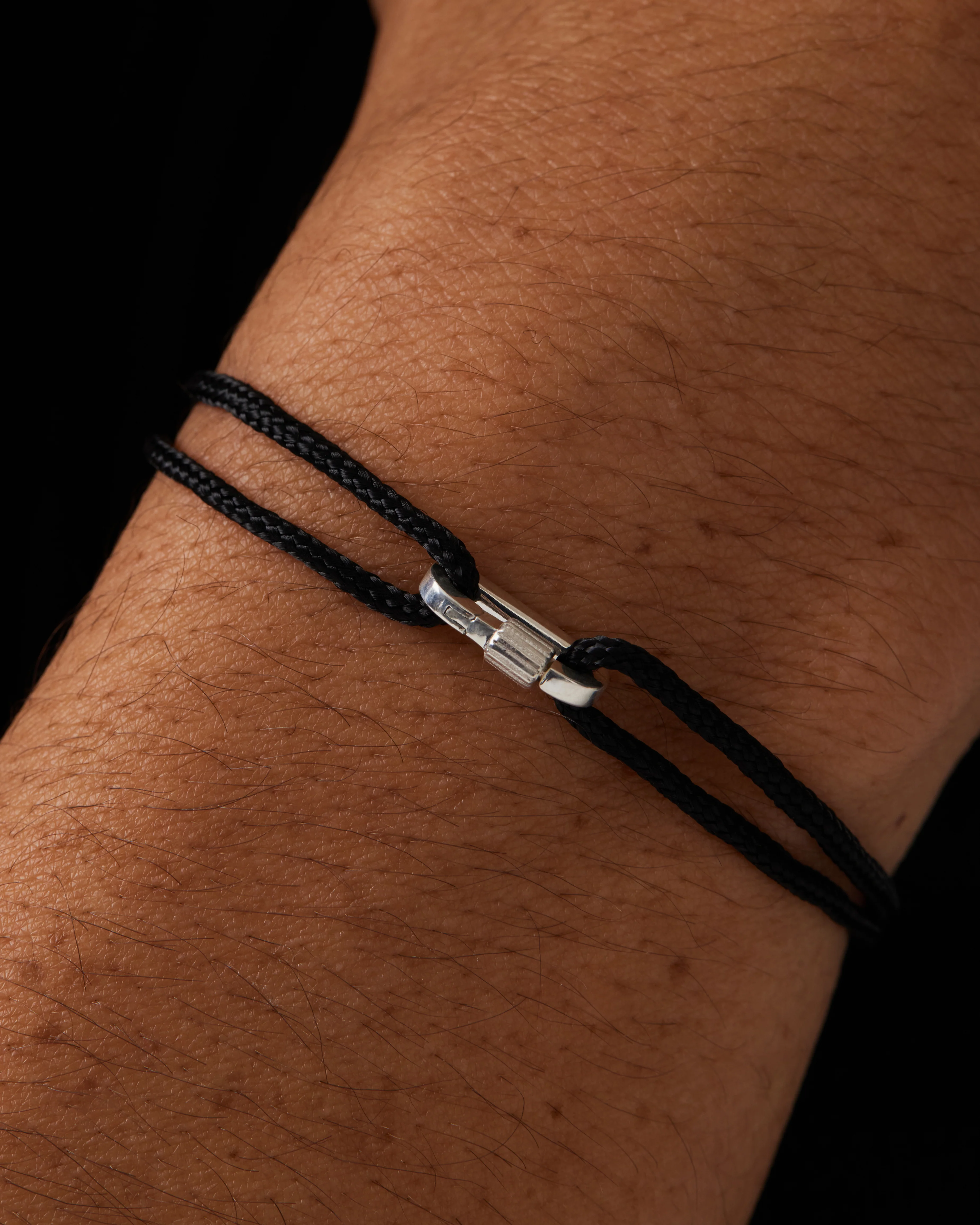 An everyday men's bracelet designed for the intrepid spirit in pursuit of adventure, the Lock Cord Bracelet features a sterling silver carabiner motif, threaded on a fabric cord reminiscent of hiking ropes. Cords are available in a variety of colours, so you can wear your piece according to your energy.