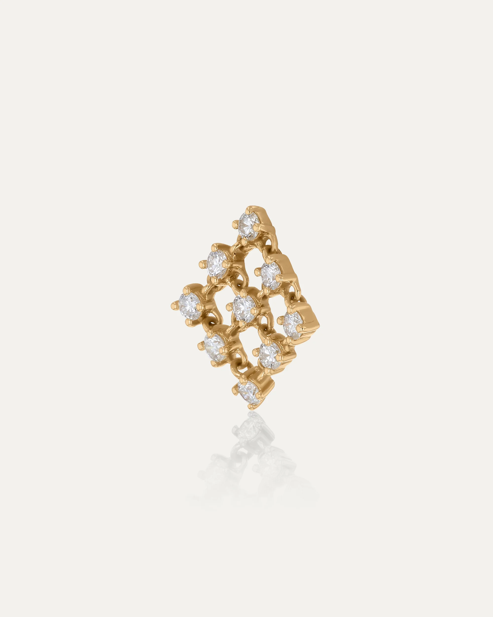 Handcrafted in 18k yellow gold, each earring forms a geometric pendant set with 9 round white diamonds, totalling 0.54 carats. Softly beaded claws and a high-polish finish enhance their interplay of motion and light, offering radiance from day to evening.