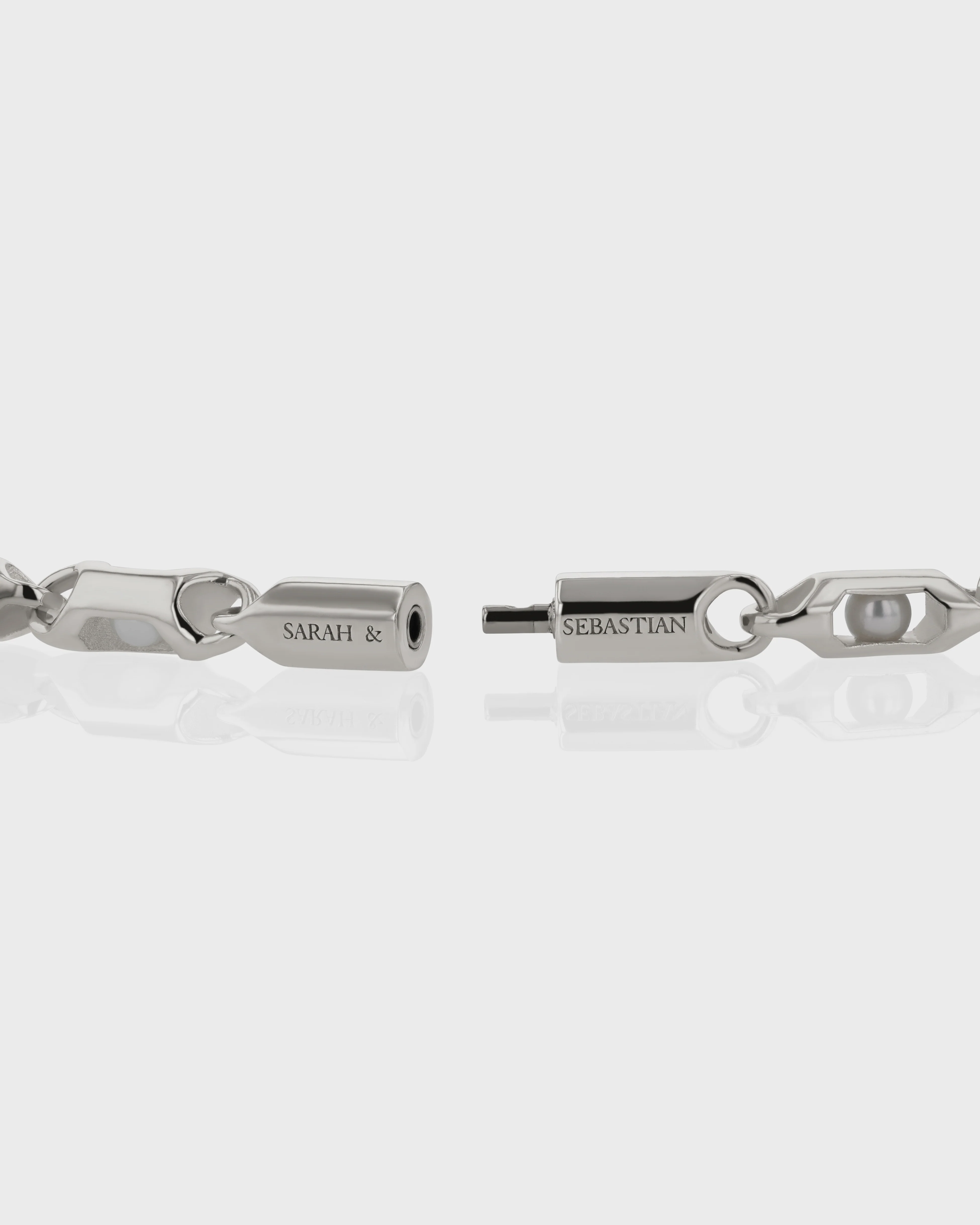 Subverting conventional notions of masculinity, the Pearl Piston Chain treads the line between grit and vulnerability. This unconventional men's necklace features freshwater pearls inlaid between precisely engineered automotive piston chain links, each carefully hand-assembled in our Sydney Studio. Crafted in sterling silver, this necklace is designed to connect with the Pearl Piston Bracelet, merging diverse metals to craft a new look.