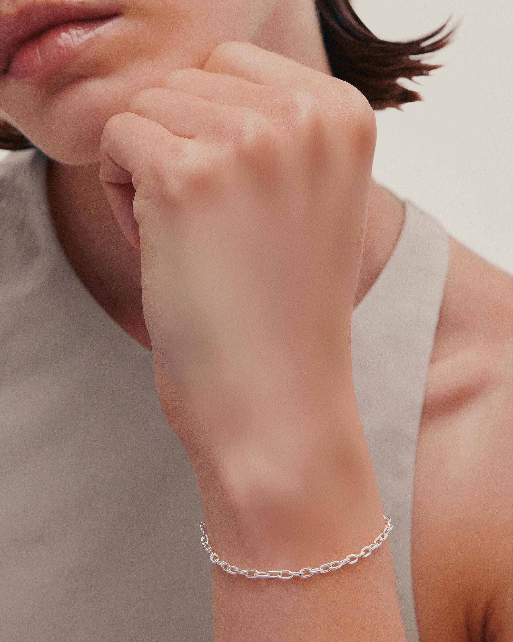 Handcrafted in sterling silver, the Promise Bracelet is a contemporary expression of connection. Its interlocking forms create a chain that embodies quiet strength and intention, offering a modern interpretation of a classic motif.