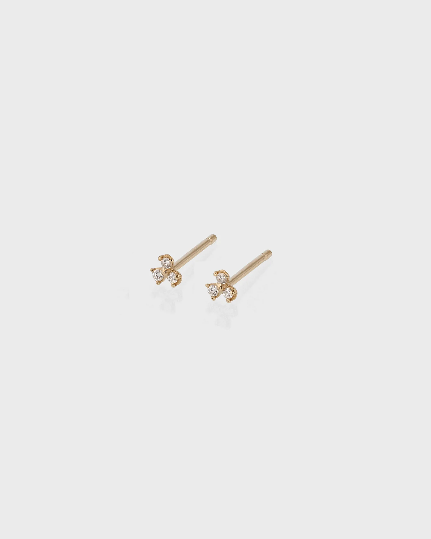 The Trio Diamond Earrings take our signature Trinity design and elevate them with a trio of white diamonds set in a minimal 18 karat gold setting. Designed for the lobes, these studs can be separate or in a pair, and look best when stacked along the ear with other cartilage and lobe earrings from our collection.