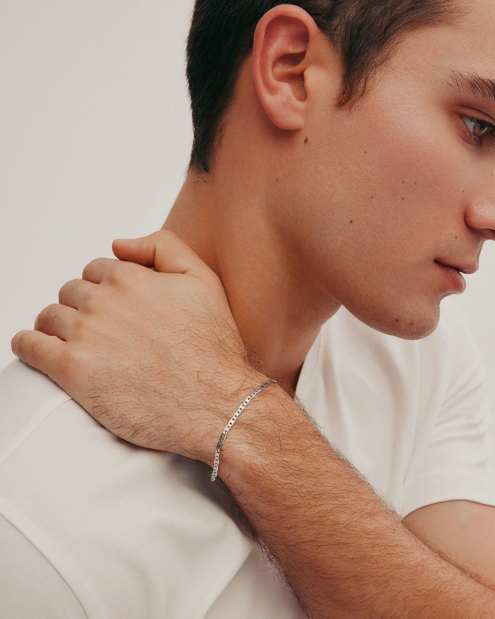 Handcrafted in sterling silver, the Valentine Bracelet is a refined interpretation of modern connection. Defined by clean lines and subtle detailing, it balances strength with softness, making it an understated piece for everyday wear.