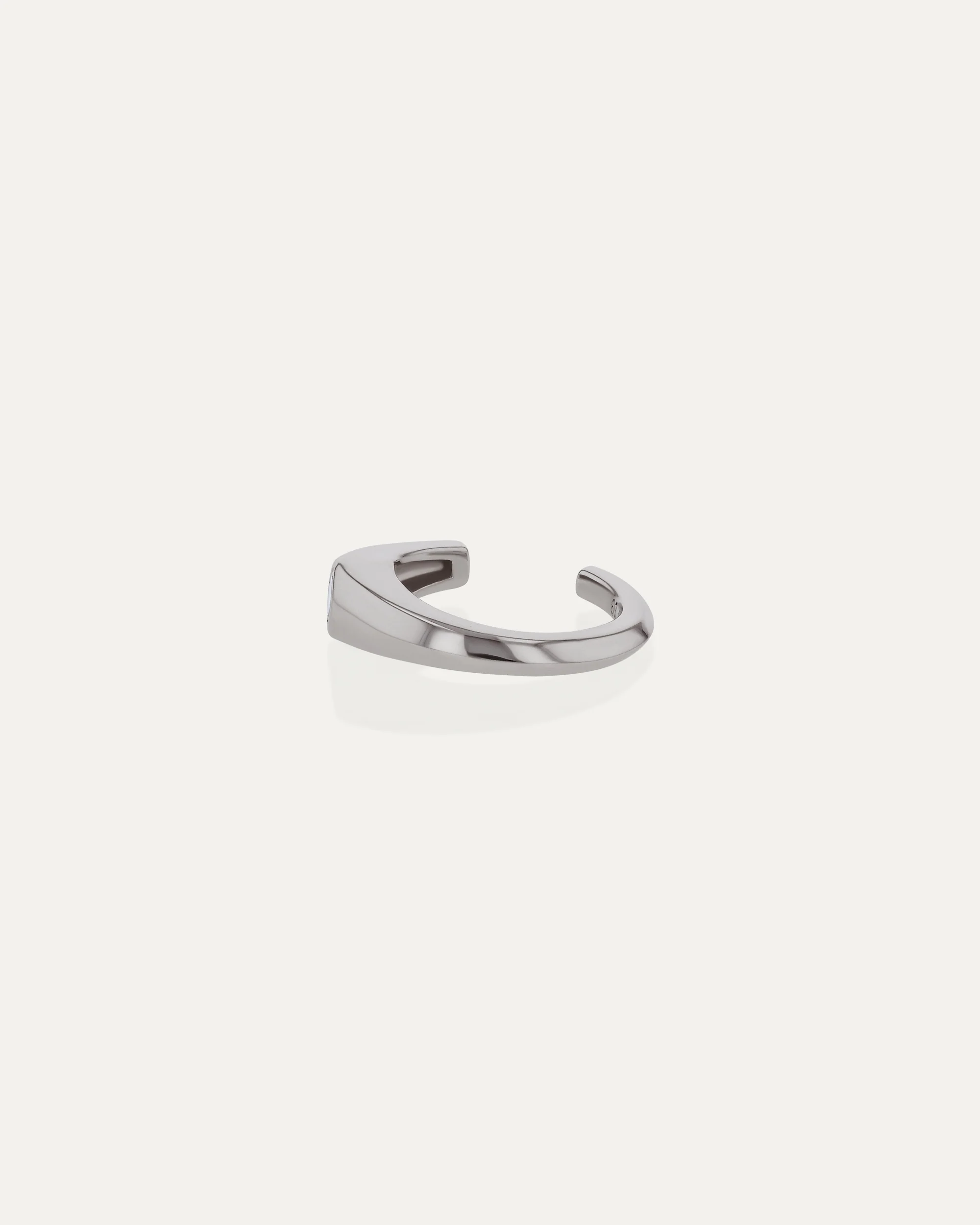 The Zenith Ear Cuff is a delicate geometric design in 18k white gold, punctuated by a bezel-set Asscher-cut white diamond. Softly sculpted and handcrafted in our Sydney studio, the cuff wraps the ear with structure and luminosity - where light meets geometry.